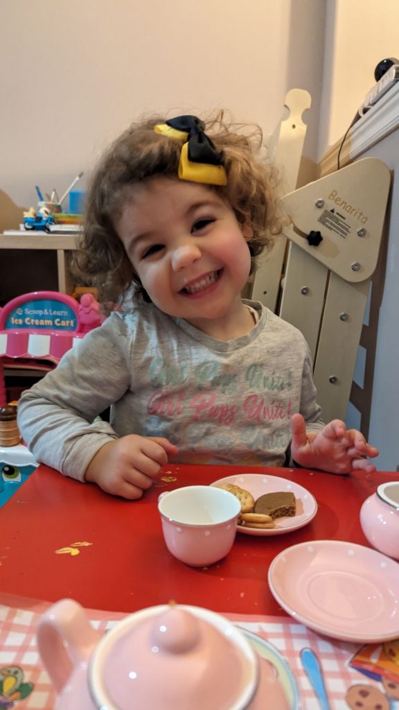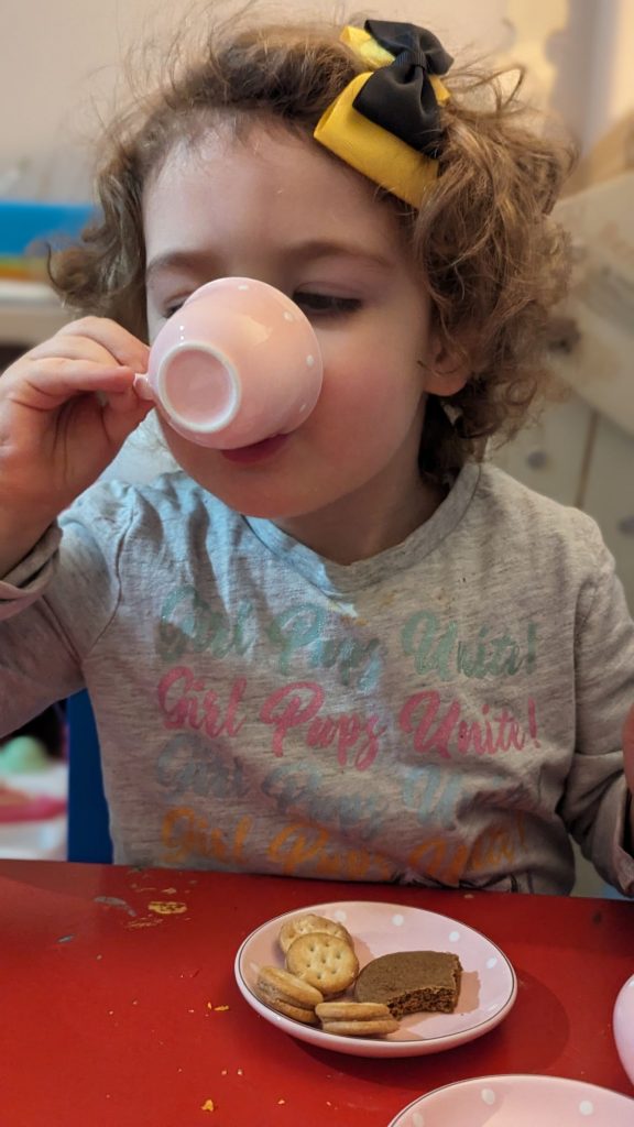 She poured me tea saying, “Would you like some more, madam?” – mimicking Bluey! Woot!