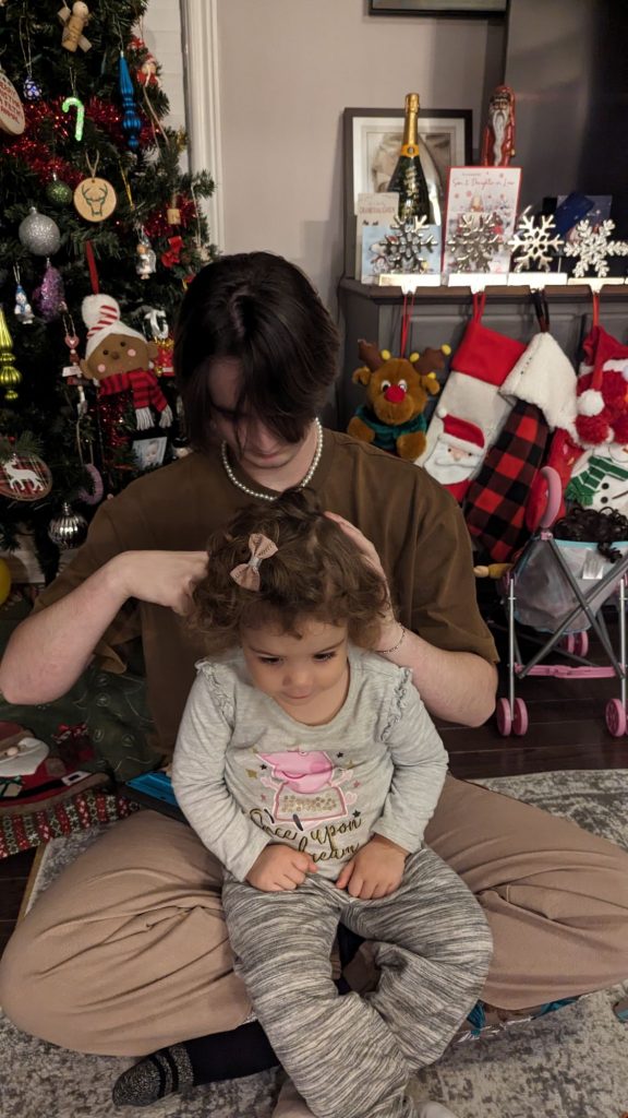 Ollie brushing Emmy’s hair at her request