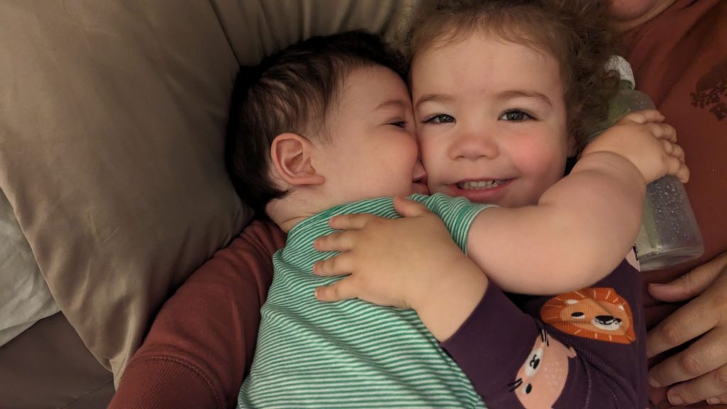 Morning cuddles By dadmin On June 23, 2024 In Uncategorized Previous Bros sharing a glass of water Next The ladies and their electronics 3 Comments Add Comment → Nana Great photo 🥰 June 23, 2024 Reply Zia Deedee So squishy!! 💜🩵 June 23, 2024 Reply Zia Coco The sweetest combo! June 24, 2024 Reply Leave a Reply Cancel replyYour email address will not be published. Required fields are marked *Comment * Name * Email * Website Save my name, email, and website in this browser for the next time I comment. Notify me of follow-up comments by email. Notify me of new posts by email.