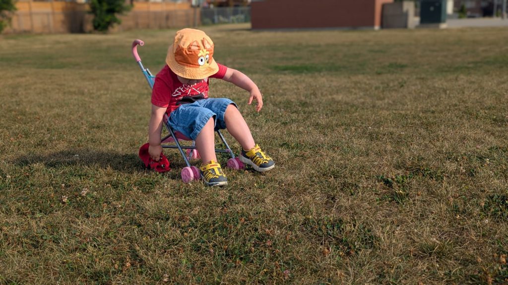 Alfie had a solo (as in sans Emmy) trip to the park. He definitely got mopey pretty quickly coz she wasn’t there. He sat in the doll stroller and contemplated life (I presume)
